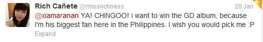 Whoever that winner will be, you’ll have to take a picture of yourself with GD’s album so that I can post it also here in my blog!